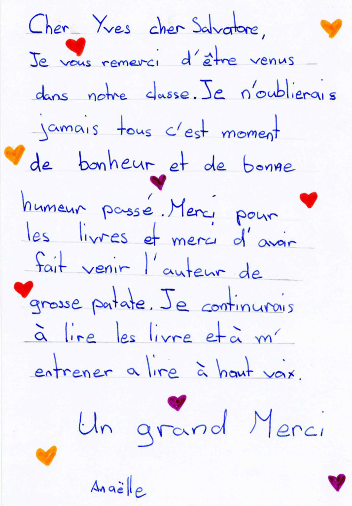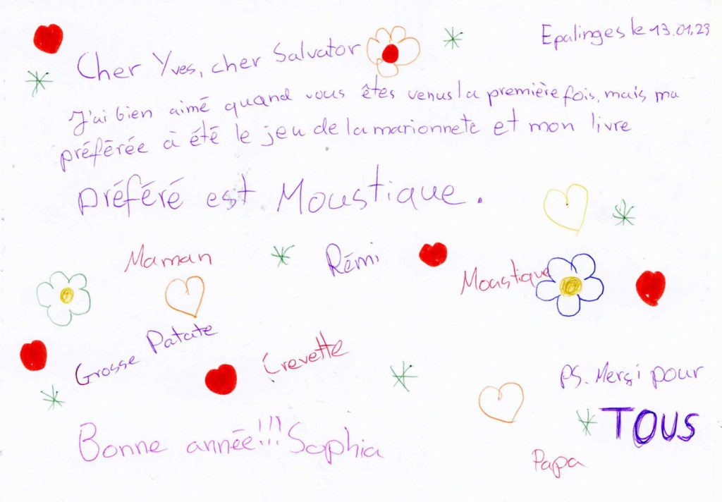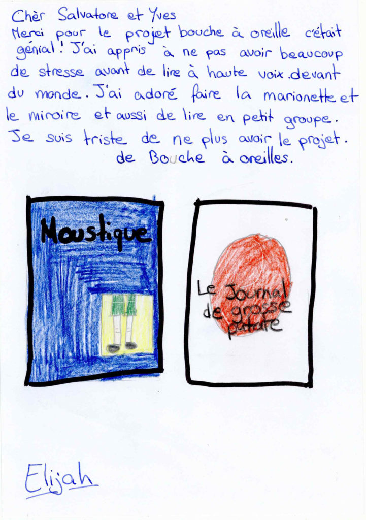 Chaque élève reçoit personnellement deux livres, appelés à circuler, traces de l’expérience vécue.