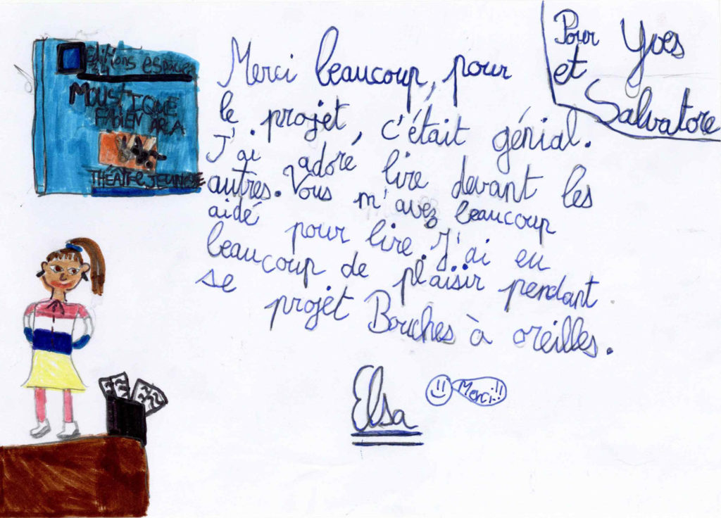 La dernière intervention est dédiée à la rencontre avec l’auteur d’un des deux livres étudiés, qui se déplace en classe et échange avec les élèves autour de son métier d’auteur, de l’écriture, du théâtre, de l’enfance.