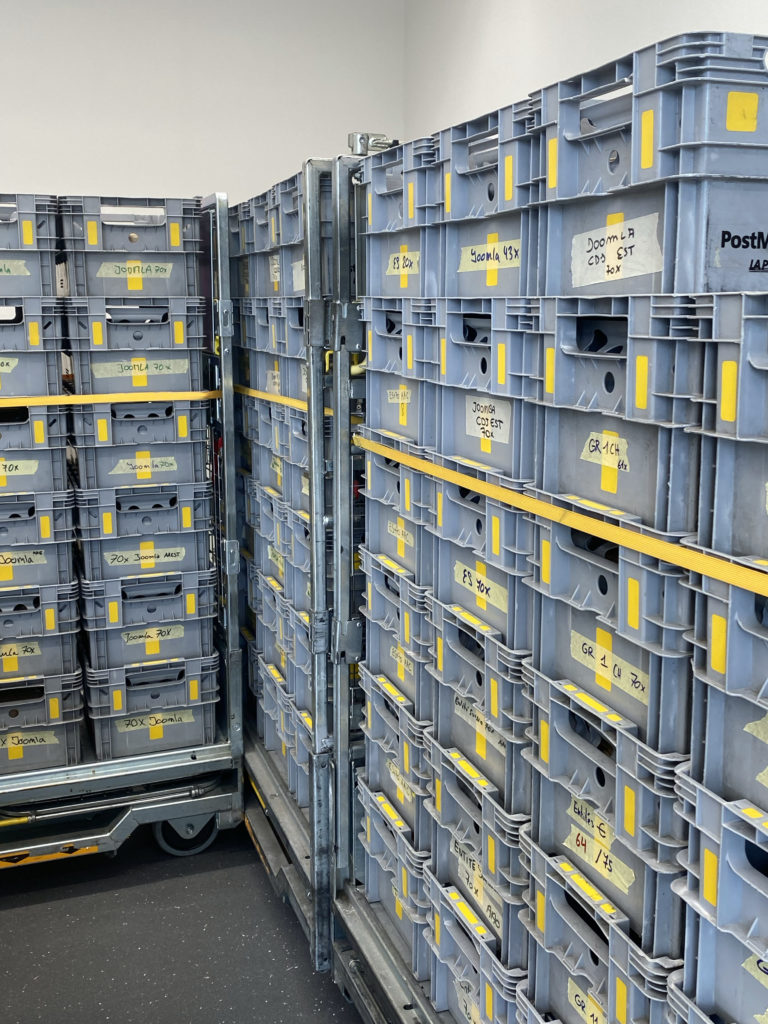 La mise sous pli – travail méticuleux et plutôt chronophage – a été réalisée par les mains expertes des ateliers artisanaux de l’Association Le Foyer à Lausanne. Ces travailleuses et travailleurs ont emballé, scotché, étiqueté et vérifié que chaque adresse soit complète avant de déposer délicatement le calendrier ou le flyer dans des caisses, ensuite récupérées par La Poste. Et ça en a fait des caisses!