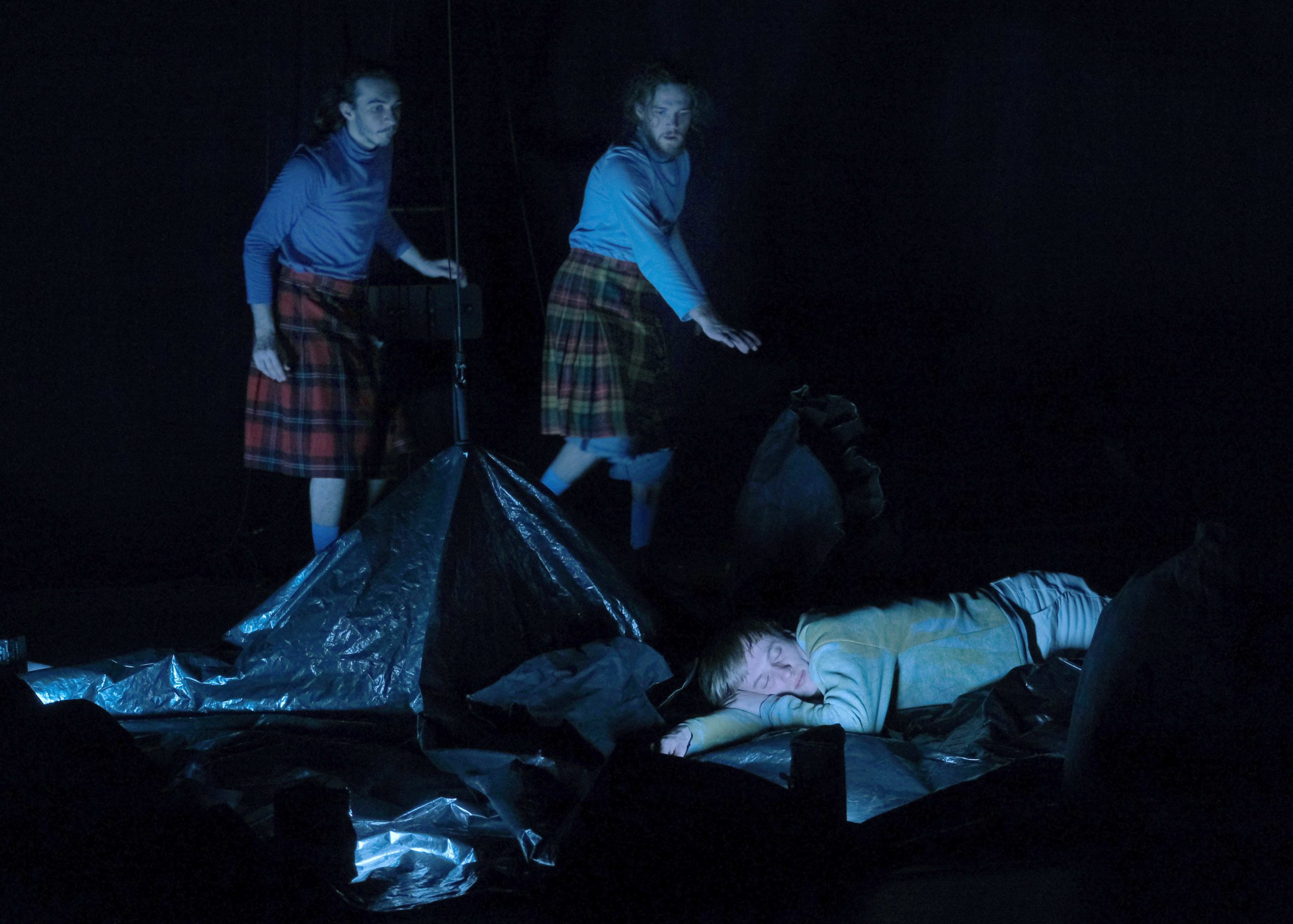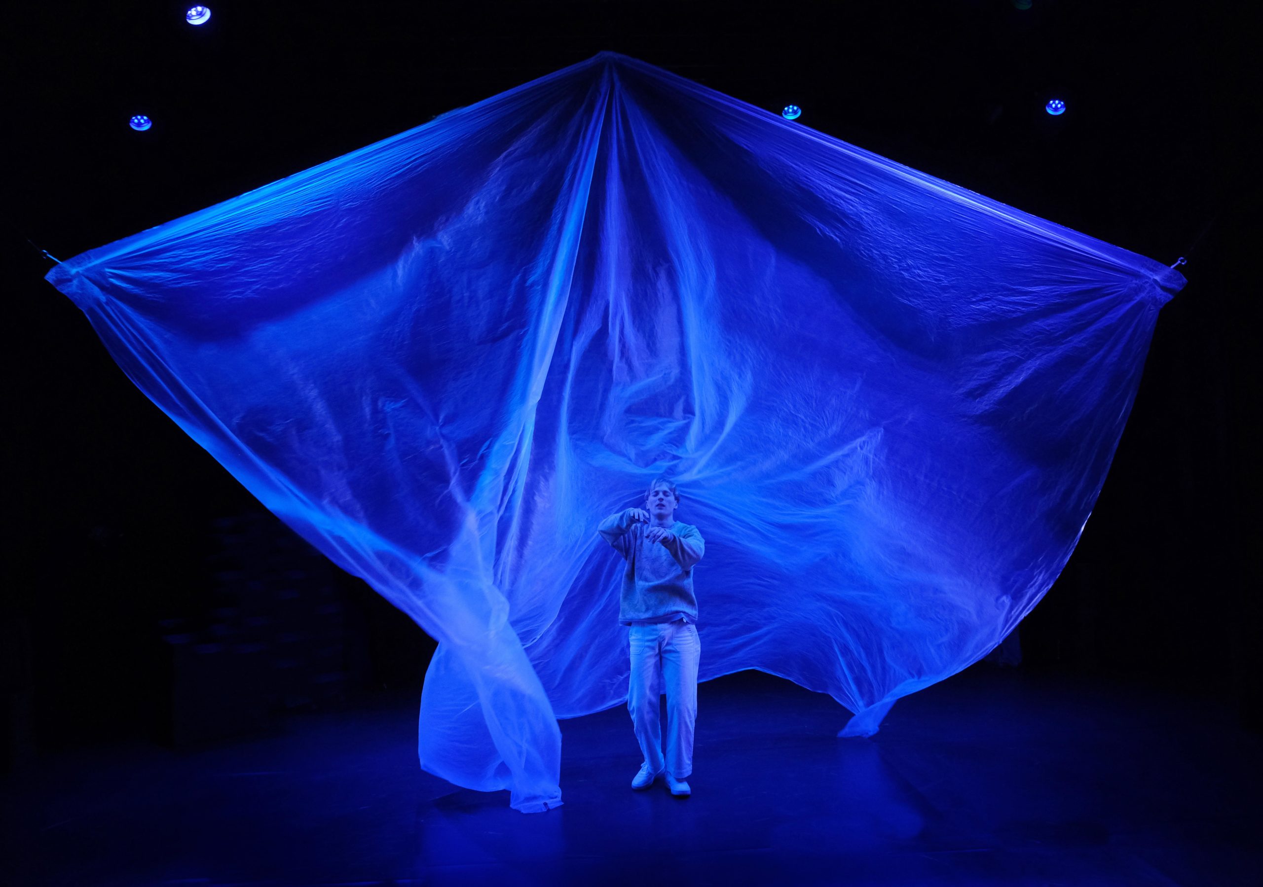 Un garçon se réveille en pleine nuit dans un monde inconnu qui se fait et se défait, et qu’il doit apprendre à apprivoiser. Au cours de sa quête, un duo à la fois clowns, anges gardiens et techniciens prend un malin plaisir à semer des embuches sur son passage. Des bâches deviennent tour à tour paysages, animaux ou personnages fantastiques…