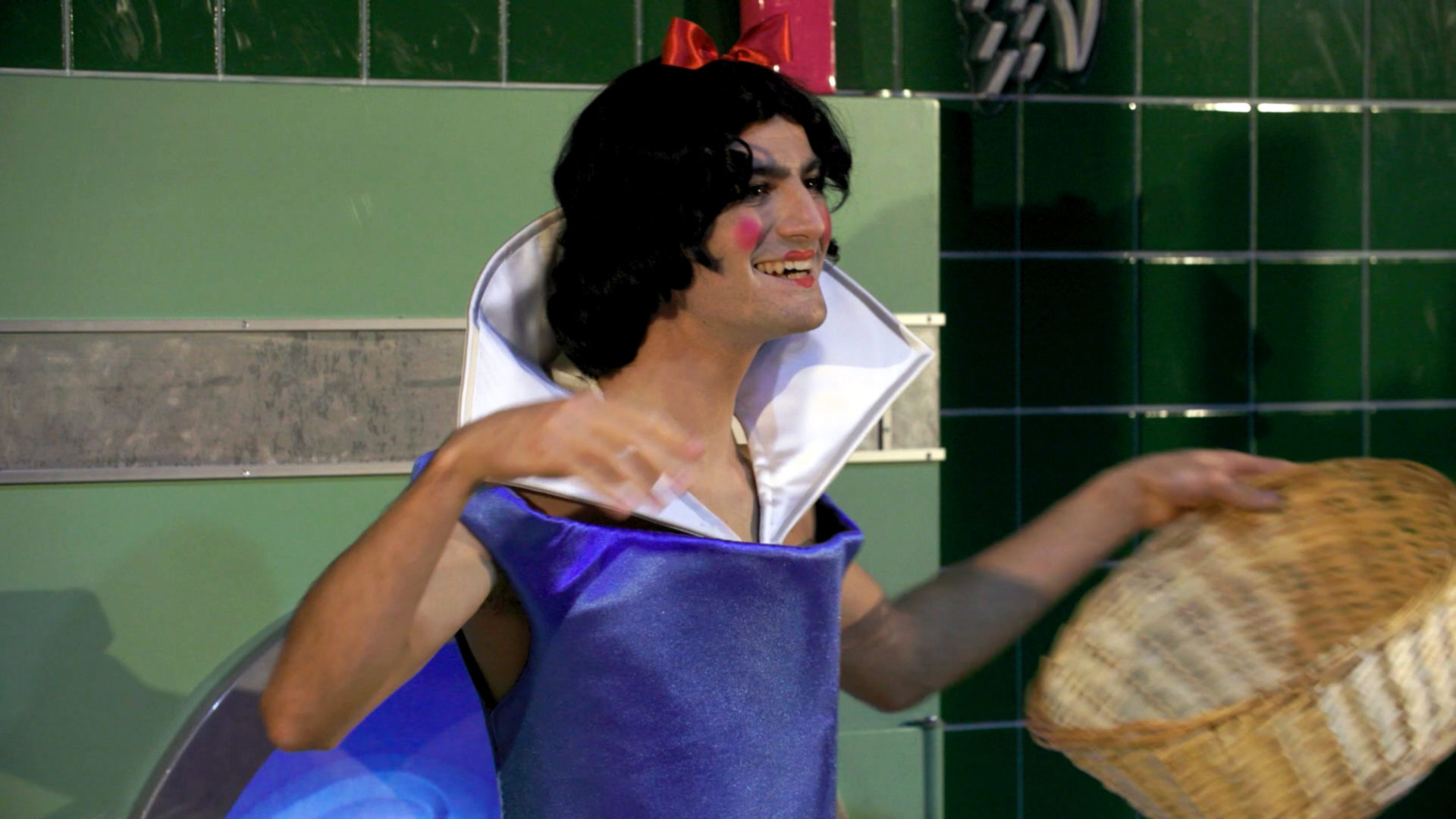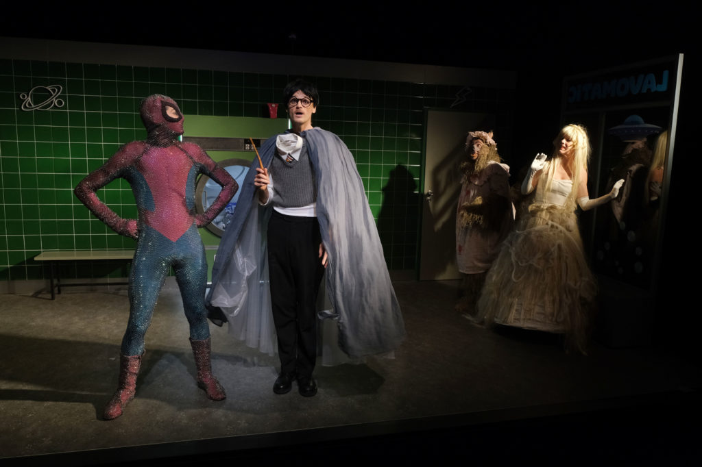 Dans une laverie réservée aux personnages de contes et aux super-héros, nous assistons à la rencontre imprévue entre une princesse, un loup, Spiderman et Harry Potter.