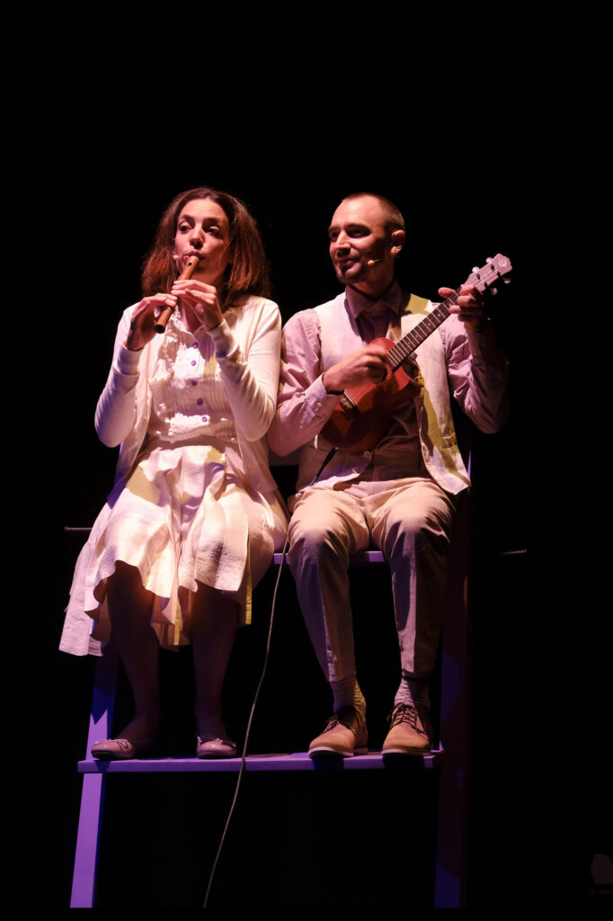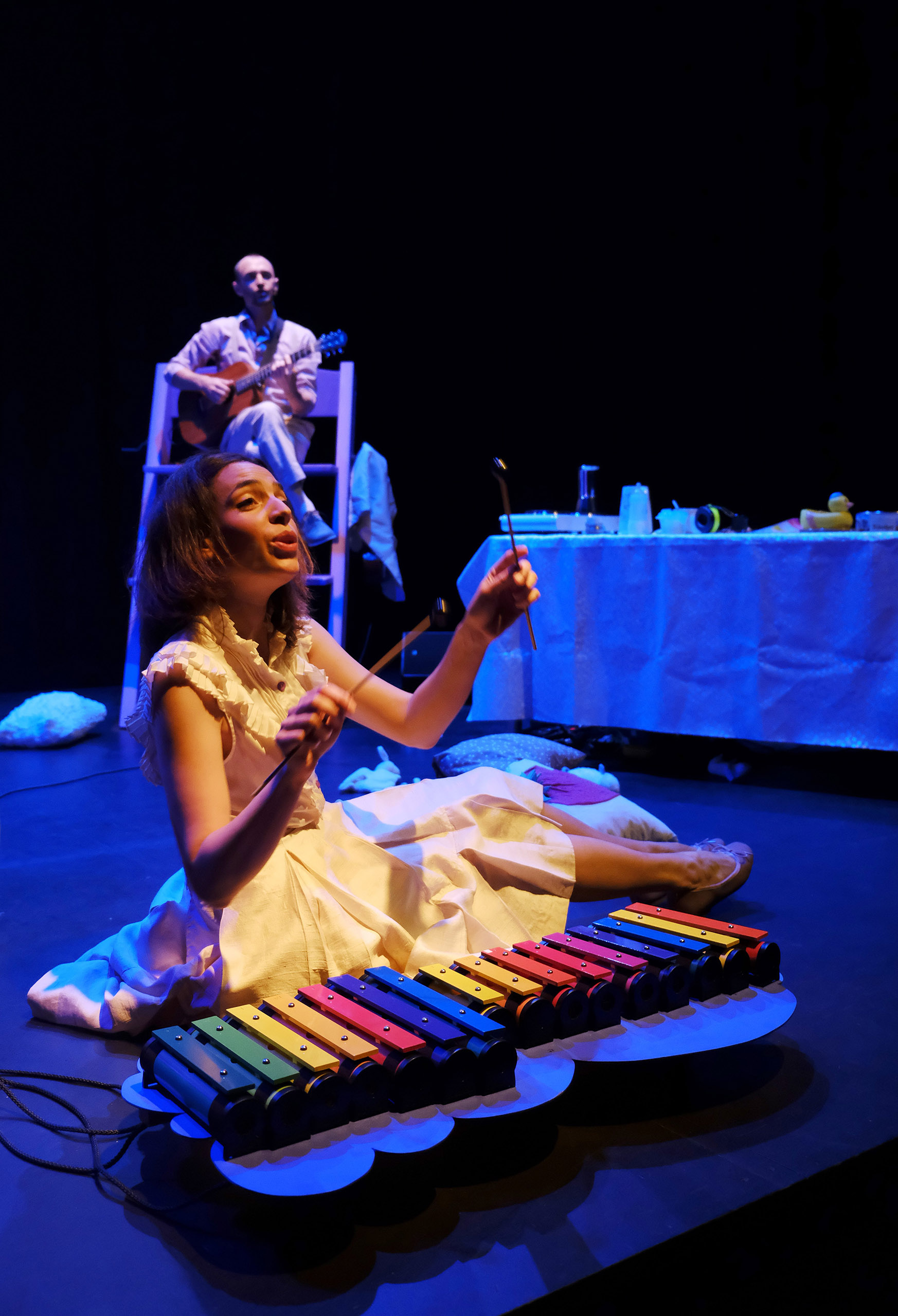 Dans cette nouvelle création à l’attention du très jeune public, Tamaé Gennai et Pierre Deveaud s’adressent directement aux enfants en jouant avec leur langage et les objets de leur quotidien, comme ils l’ont déjà fait avec talent dans Tête en lune et L’Ô.