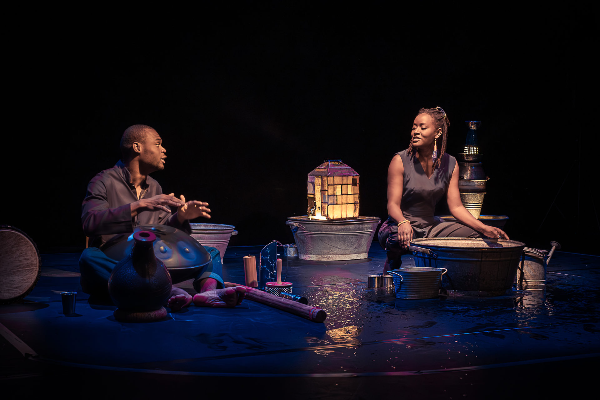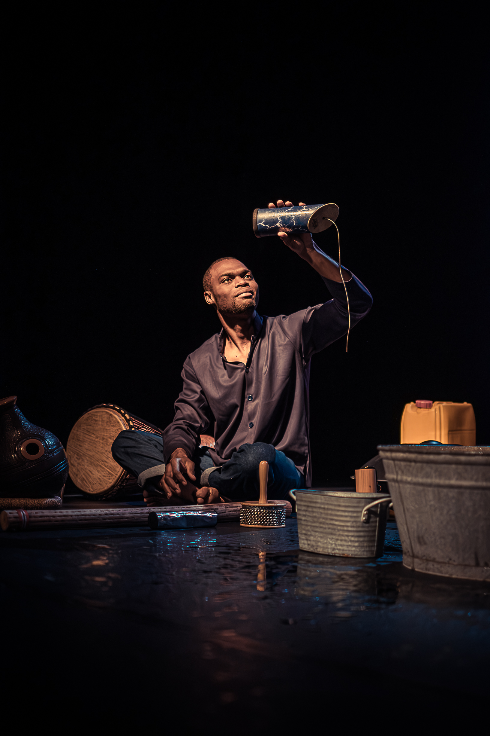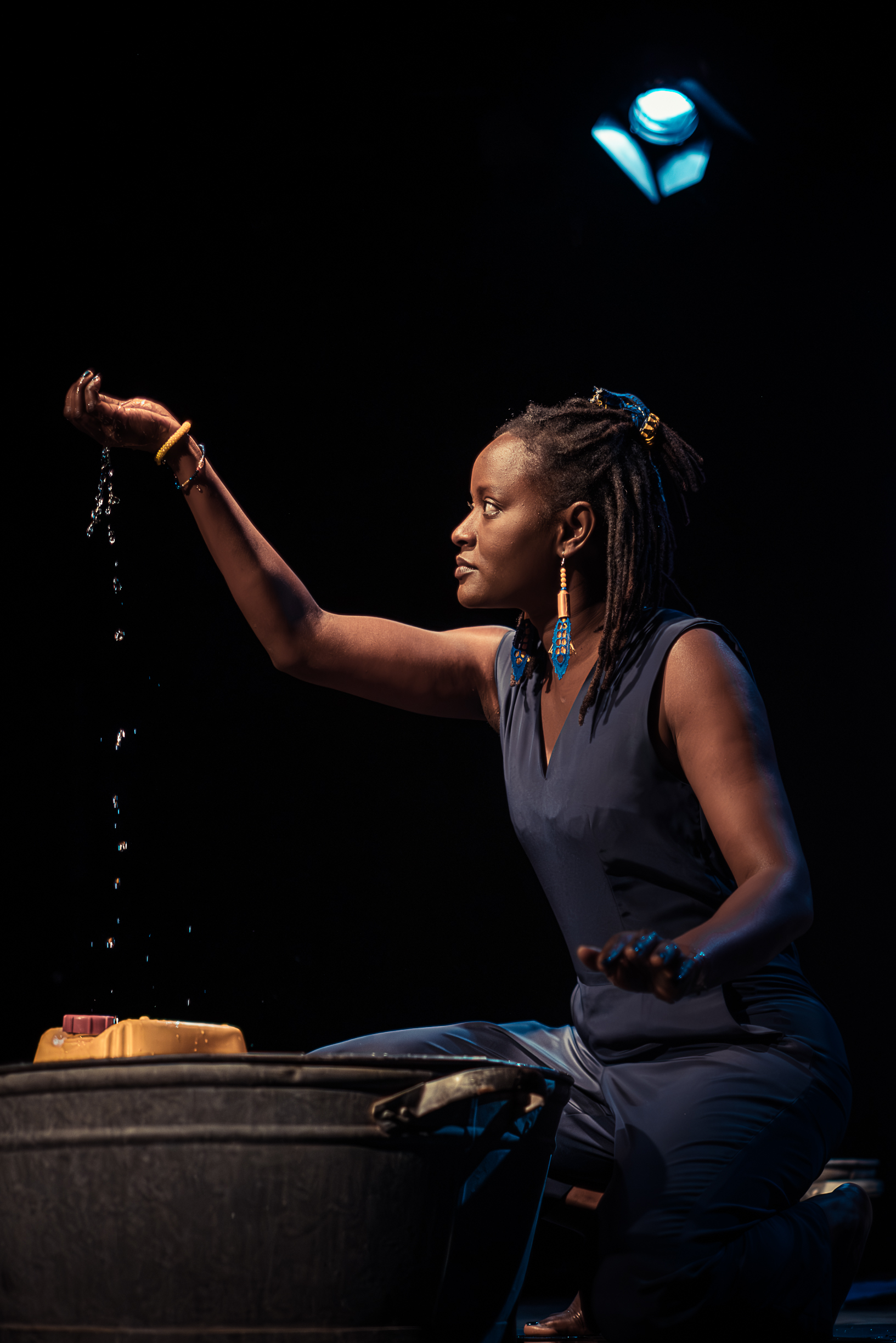 Walangaan – l’eau qui coule à flot en wolof – raconte à sa façon le cycle de l’eau. L’eau qui abreuve, l’eau qui ruisselle sur la peau, l’eau qui éclabousse, l’eau qui chante, l’eau qui jaillit. Et l’eau qui, parfois, de plus en plus, vient à manquer.